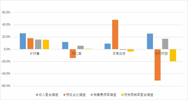云南白药最强势,存货周转率为负,但预收账款增速极快,说明一件事:下游对产品的需求十分紧俏。