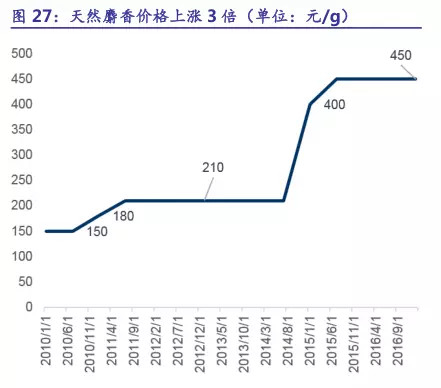 并且,基于天然麝香的稀缺性,以及极高的品牌护城河,使其具备持续涨价的基础。可以说,未来10年,不断提价是大概率事件。