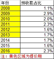 到了提价尾声2012年时,预收款占比降低,并在2013-2015年(价格平稳期),预收款占比保持不变;