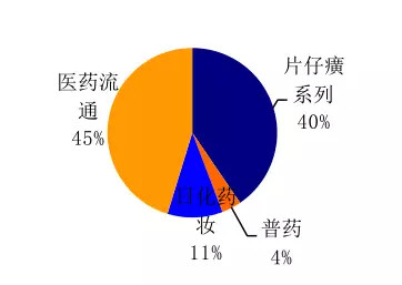 片仔癀系列药品,收入占比约为40%,药品流通(占比45%),再是日用、化妆品(占比11%)、普药(占比4%)。