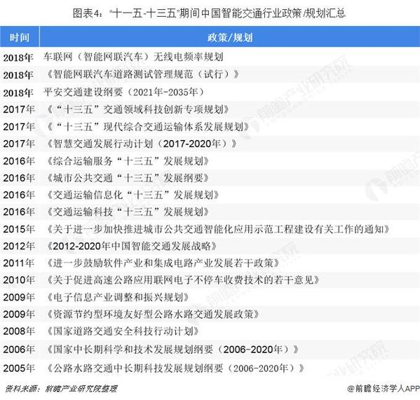 2016年5月,交通部发布《交通运输信息化“十三五”发展规划》。《规划》提出,围绕加快“四个交通”建设和“十三五”期交通运输发展的主要任务,大力推进智慧交通建设,促进现代综合交通运输体系发展。2017年1月,交通运输部发布《智慧交通发展行动计划(2017-2020年)》,提出要在基础设施上、生产组织、运输服务和决策监管等方面加强对于智能交通的支持。