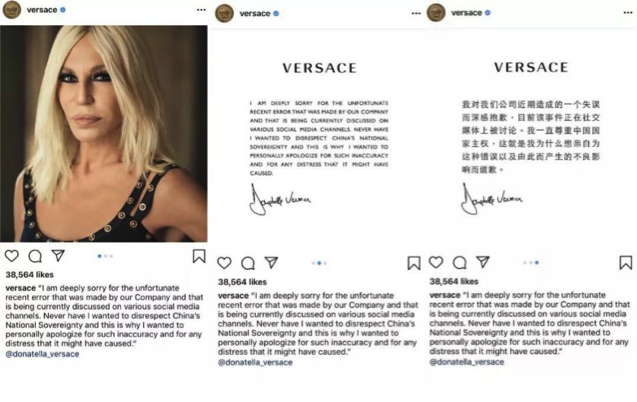 被曝光后,范思哲于8月11日凌晨通过官方微博道歉,表示该T恤存在错误设计,已在官方所有销售渠道下架并销毁。其品牌创意总监Donatella Versace分别在Instagram、Facebook、Twitter上发布道歉声明。