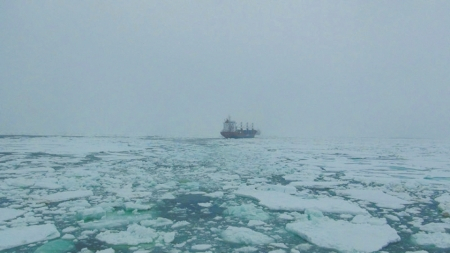 在冰面上航行,即使前方的破冰船将浮冰顶开,四处的冰也会像泡沫一样,很快将航线重新淹没。而此时,吴广锋发现前方船的尾迹丢失了,四周都是淤积的冰,船身很快动弹不得。但轮船不能停,否则螺旋桨会被冰缠绕、冻住,那可是致命的危险。情急之下,只能立即呼叫破冰船。破冰船立即掉头过来,费了九牛二虎之力,终于帮永盛轮重新破冰,开通了连接前方船的航路。