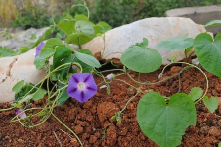 “晓雨微微洒物华,牵牛初发傍墙花。”牵牛花的花儿总是在夏末秋初的季节悄悄地倚着墙角开放,这是一种一年生的缠绕草本植物,它们从种子发芽到开花的生长过程十分迅速,只要有它们身边有任何可以倚靠的东西,小小的牵牛幼苗就能马上缠绕上去,迅速地向上攀爬,很快又生长出圆心形的叶片。它们的花自叶腋生出,通常一朵花单生或者2-5朵花着生于花序梗顶端形成伞形聚伞花序。