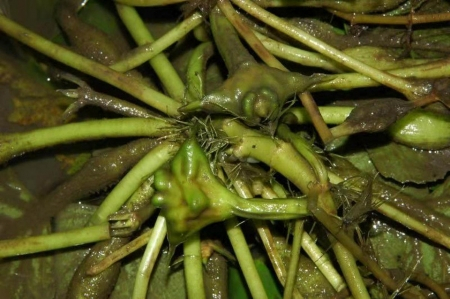 菱是一种极古老的中国植物,在我国已有三千年以上的栽培历史。菱是典型的浮水植物,整棵植株基本上都漂浮在水面上。菱叶有着长长的叶柄,叶柄的中上部膨大,叶柄中间是空的,形成一个气囊,给菱穿上了“救生衣”。菱能够漂浮与水面的原因,便要归功于浮水叶上肥大的叶柄。菱叶浮水叶的叶片多为菱形,叶边缘中上部有不整齐的圆齿,这也是它植物名字“菱”的来历。