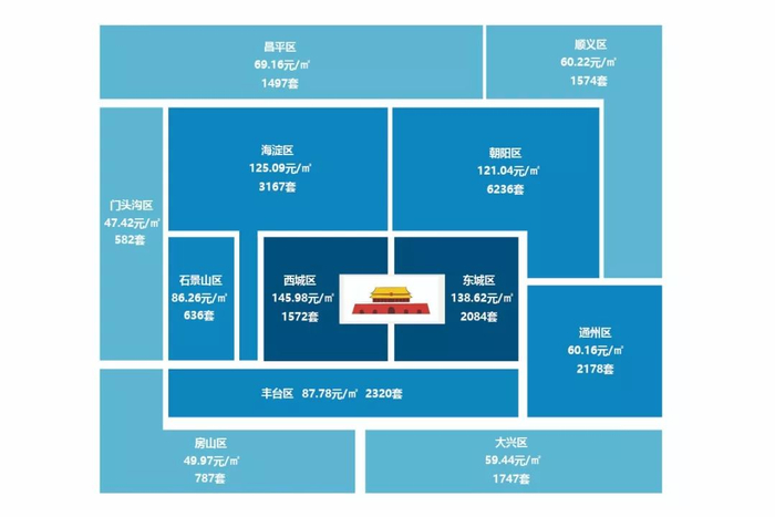 受数据源网站信息所限,本次所涉及的房源多为北京市六环内的房屋价格数据,并未涉及远郊区县,这也是租房房源价格偏高的一部分原因。当然,这在一定程度上也能更好的反应整个北京中心城区的房屋价格情况。
