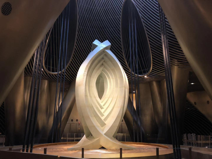 如今在上海中心大厦第125层,人们就可以看到这枚阻尼器。阻尼器的顶部还有一枚艺术装置,叫做“上海慧眼”。