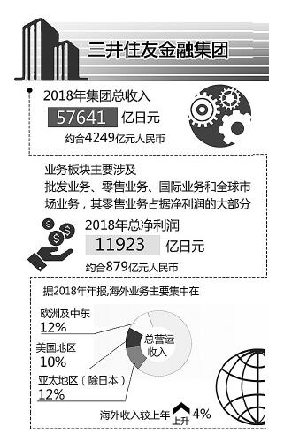 2.经营情况。2008年后,三井住友金融集团也进一步拓展全球化战略。据2018年年报,集团的海外业务主要集中在美国、欧洲、中东以及亚太地区,美国地区占有总营运收入的10%,欧洲及中东占据12%,亚太地区(除日本)占据12%,集团的海外收入较上年上升4%。2018年集团总收入57641亿日元(约合4249亿元人民币)。在数字化战略方面,三井住友金融集团进行数字化转型的目的是“改善客户体验,创造新的业务,提升产出效率,升级管理基础设施”。例如,三井住友金融集团与微软进行人工智能和公有云的业务合作,从而提升工作效率,革新工作方式。集团还与日本雅虎成立合资公司,旨在实现零售网点无纸化,并为用户提供增值金融业务。集团还开设创新基地并于初创公司进行创新业务合作。集团还推出了人脸、指纹和语音识别等生物识别科技平台。三井住友金融集团的业务板块主要涉及批发业务、零售业务、国际业务和全球市场业务,其零售业务占据净利润的大部分。2018年集团总净利润为11923亿日元(约合879亿元人民币)。