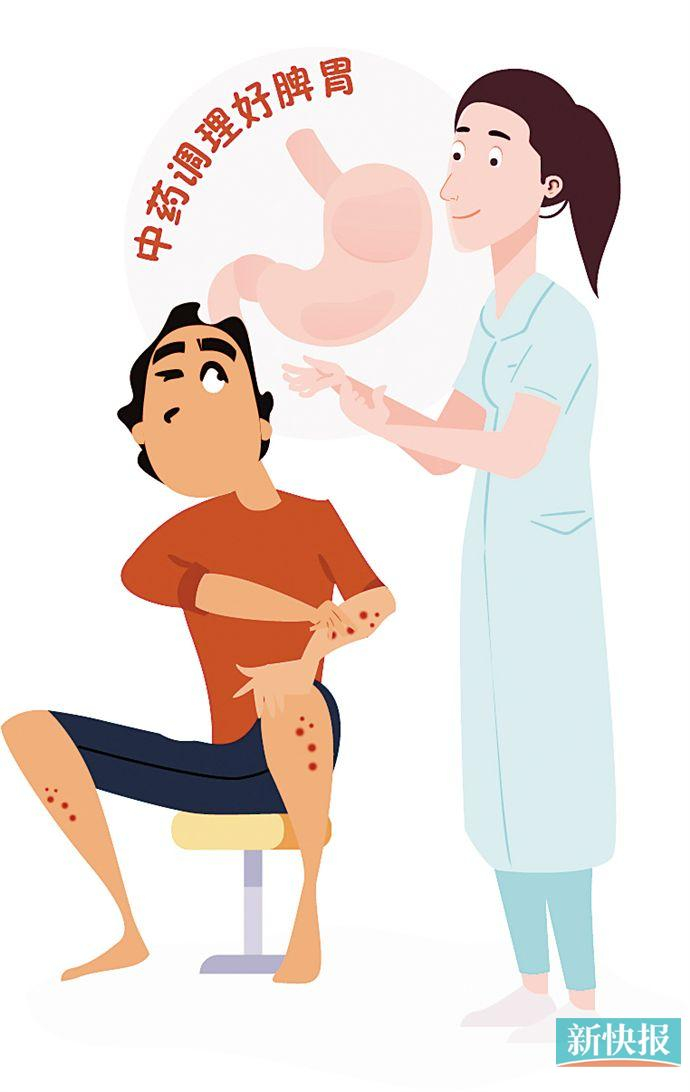 一是要忌口,避免进食过敏的食物,如海鲜类食物、鸭鹅、牛肉羊肉等高蛋白的食物。中医来说,这类人的脾胃比较差,吃了这些食物容易造成湿毒。