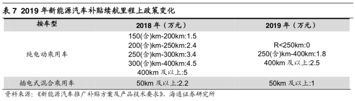 从政府补贴角度来看。根据2019年3月财政部等四部委发布的《关于进一步完善新能源汽车推广应用财政补贴政策的通知》,插电式混合动力乘用车续航里程超过50km的补贴上限为1万元,而纯电动乘用车续航里程虽然在50-250km间补贴为0 ,但是在250-400km间的补贴为1.8万元,超过400km即可达到2.5万元,而市面上的纯电动车的续航里程大多超过250km。因此从政府补贴的角度来看,长续航的纯电动车对于购车者来说更具吸引力。