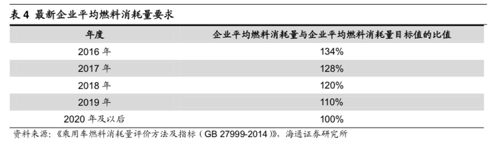 2019年是双积分政策正式考核的第一年。根据2017年9月工信部、商务部等联合外发的《乘用车企业平均燃料消耗量与新能源汽车积分并行管理办法》,双积分政策将从2018年4月1日正式实行,并自2019年度起实施企业平均燃料消耗量积分核算。2019年的新能源积分所占比例为10%,2020年的积分所占比例为12%,根据2019年7月9日工信部发布的《乘用车企业平均燃料消耗量与新能源汽车积分并行管理办法》修正案(征求意见稿),2021-2023年新能源汽车积分比例要求分别为14%、16%、18%,2024年及以后的新能源积分要求另行公布,适用对象为产量或进口量超3万辆车的企业。