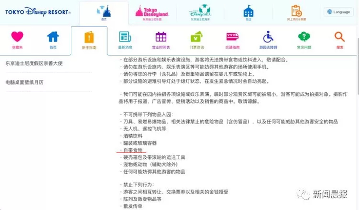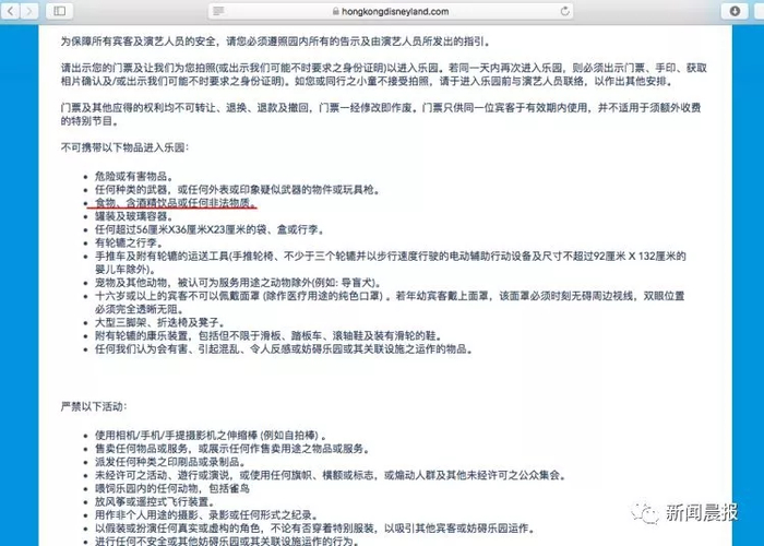 记者在这两个迪士尼乐园的官网上,的确有看到禁止携带食品入园的相关规定。