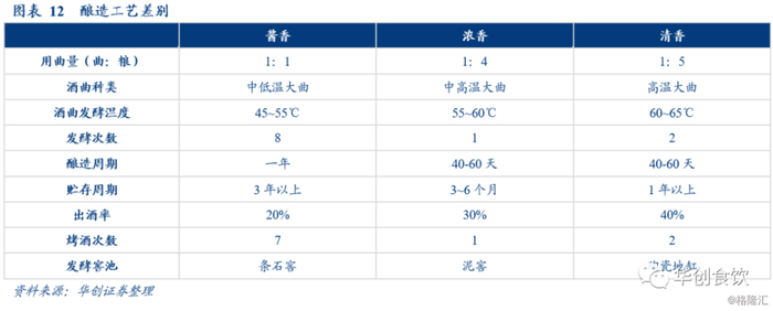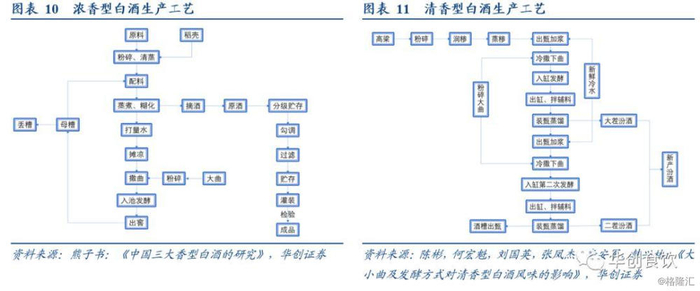 (2)清香型白酒:清香型白酒采用清蒸清糟酿造工艺、清蒸馏酒,强调“清蒸排杂、清洁卫生”,酿造特点都在一个“清”字上下功夫。