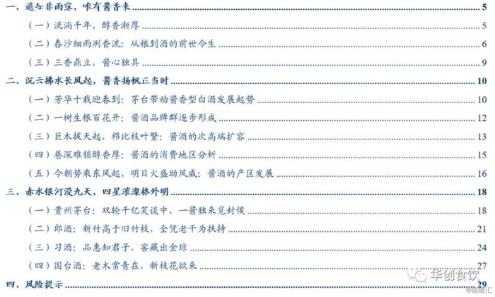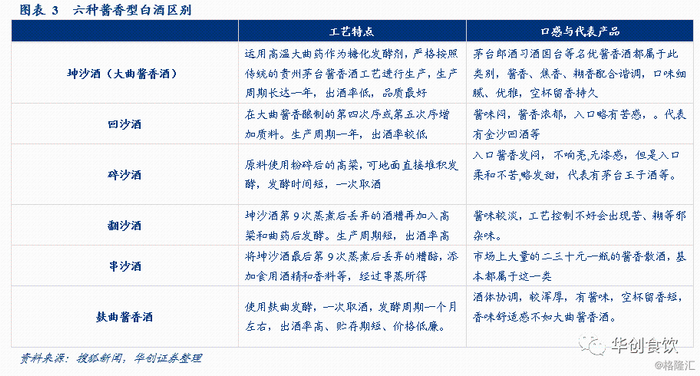 目前白酒行业三大主要香型分别为浓香型、酱香型和清香型,酱香型白酒在酿造工艺、口味等方面形成独特差异,从而培育出更趋稳定和具备粘性的消费群体。