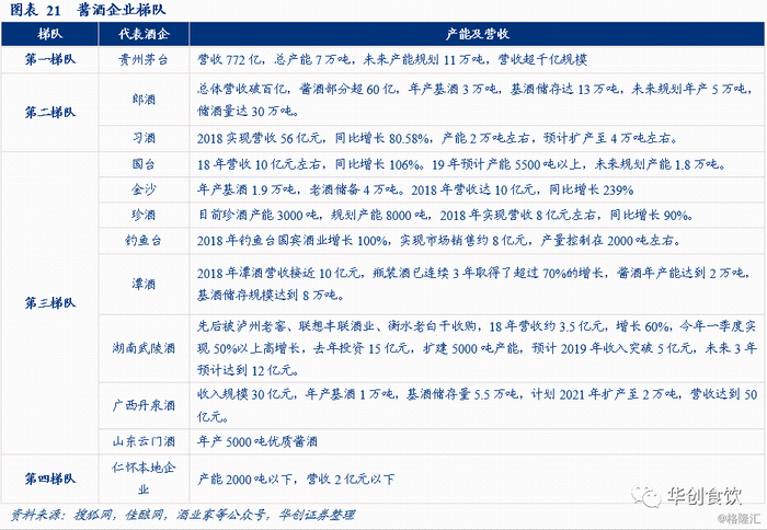 机械化酿酒助力产能扩大,数字化创新提升品控能力。近年来,国台大力建设国台酒庄,推进酿酒机械化进程,目前国台在机械化酿酒、自动化制曲和智能化储酒方面已取得多项专利,其建设的双层立体式自动化酒库可将产能扩大一倍,储酒能力提高三到四倍。根据公司调研反馈,2019年国台酱酒产能将达到6000吨,未来天士力集团将追加30亿技改资金将产能提高至2万吨。此外,在品质控制方面,国台首创中国白酒三级质量控制体系,并开发了智能品酒机器人,实现了人工品酒与智能品酒的结合,使古老的酿酒工艺从仅凭经验控制上升到数字化、标准化的科学控制。