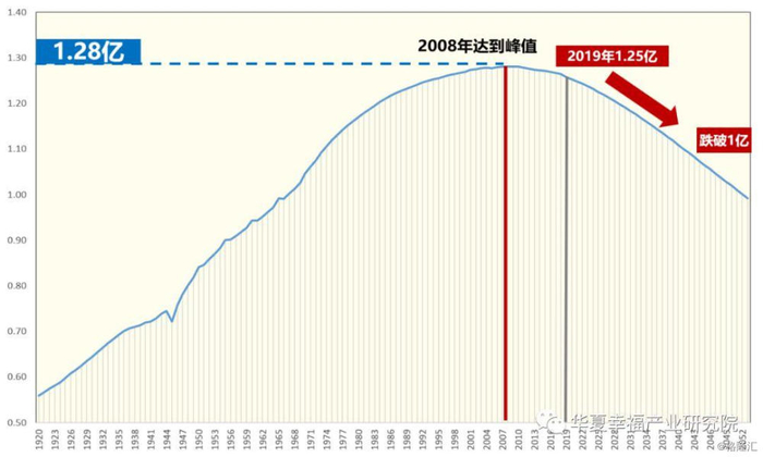 图2.1920-2052年日本总人口规模变化图(亿人)