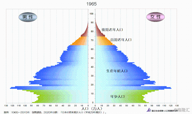 图4.1965年以来东京都市圈人口年龄结构演变图