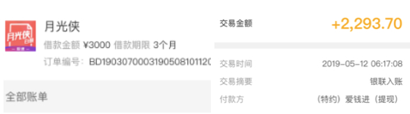 凡普金科旗下的互联网金融平台包括,P2P平台爱钱进、互联网保险分母互动、融资租赁公司驰骋租赁、保理公司天作良物、借贷平台钱站等,旗下借贷产品月光侠遭到用户投诉。21聚投诉显示,北京会牛科技有限公司旗下的月光侠分期频被指砍头息,搜索关键词有百余条投诉贴。有投诉贴显示的,其5月申请的3000元借款,到账金额为2293元。