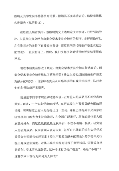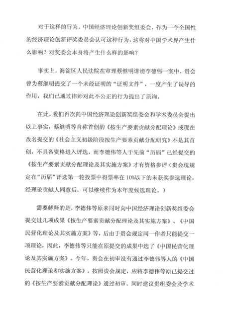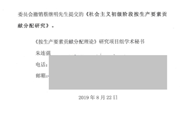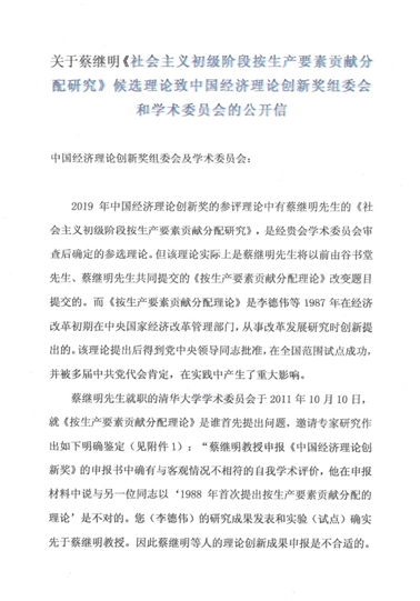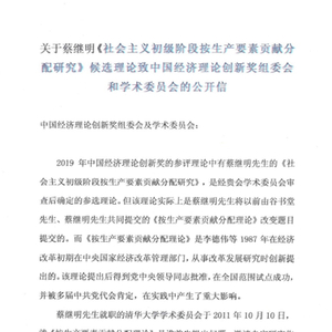 中国经济理论创新奖组委会秘书处近日收到关于“社会主义初级阶段按生产要素贡献分配研究”提出权问题的公开信,现将内容公布。