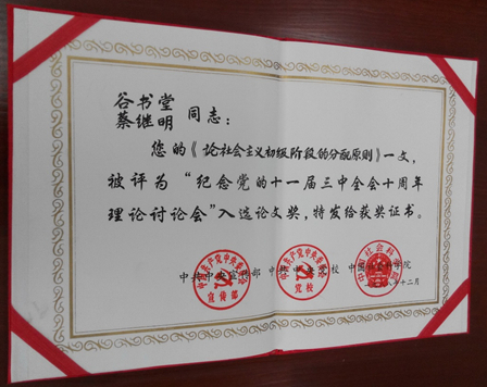 9.Gu Shutang,Cai Jiming,On the Principle of Distribution at the Primary Stage of Socialism, Nankai Journal, No. 2, 1991,Nankai University Press.