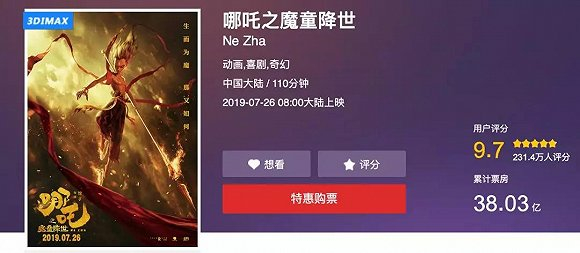 8月15日,《哪吒之魔童降世》(以下简称:《哪吒》)的票房已经超过了38亿元。