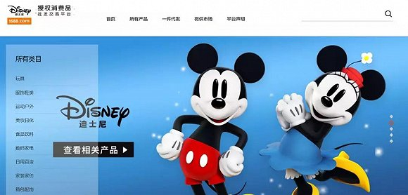 而且迪士尼非常重视中国的IP衍生品市场,他们甚至在批发网站1688上线了一个品牌专区,用来向小型经销商供货,以确保迪士尼的衍生品能渗透到中国受众的日常生活中。