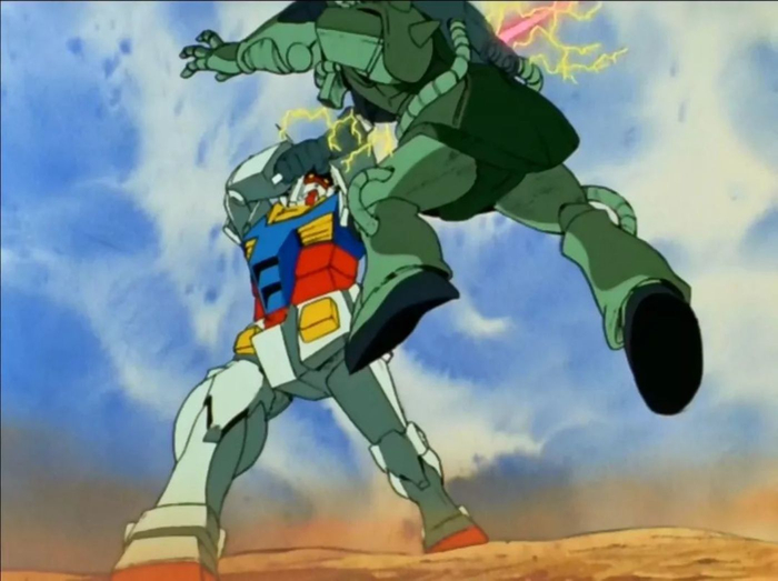 在 1979 年推出的《机动战士高达》,是高达系列的第一部作品,它讲述的殖民卫星和地球之间发生的事。虽然是以战争为题材,但高达并没有完全代入现有的战争机械设计,它用了「机动战士」这种载人操作的人型机动兵器代替了常见的坦克、战斗机这些常规具备,增加故事科幻感的同时,也降低当时人对战争带的恐惧。