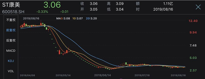 ST康美股价走势。来源:WIND