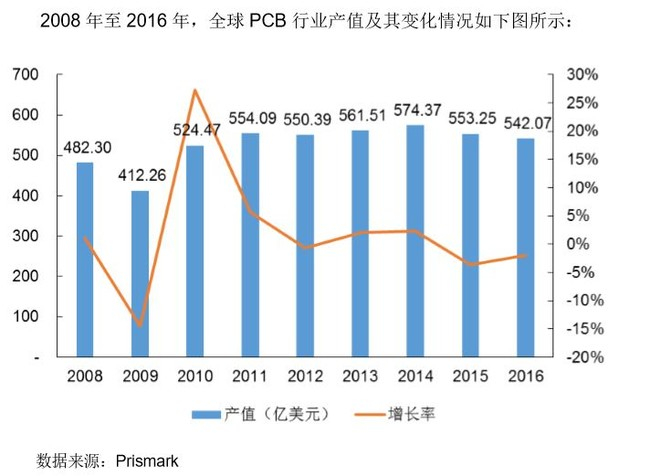 根据招股说明书披露的数据,从2011年开始,全球PCB行业产值已经停滞增长。
