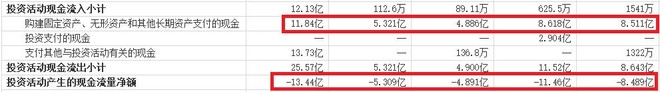 可以看到,每年投资活动现金流量净额都为负,基本上都是购建固定资产的支出,这也是科技企业的普遍特征,除了直接面向终端用户的企业以外,其它提供零部件的上游企业都差不多需要不停地新购建固定资产,因为科技企业变化快嘛,需要经常新建或升级生产线。