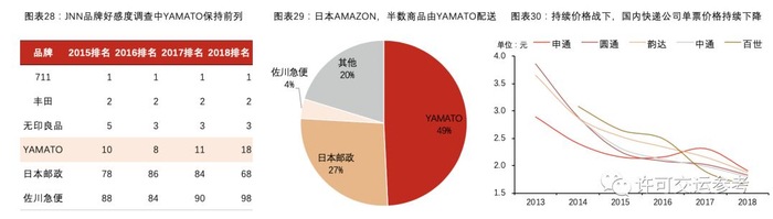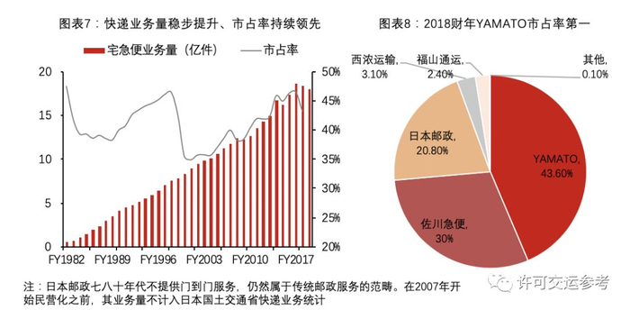同时日本快递业也存在显著不同,长期来看,日本快递市场价格差异明显,且价最高者市占率稳居第一。