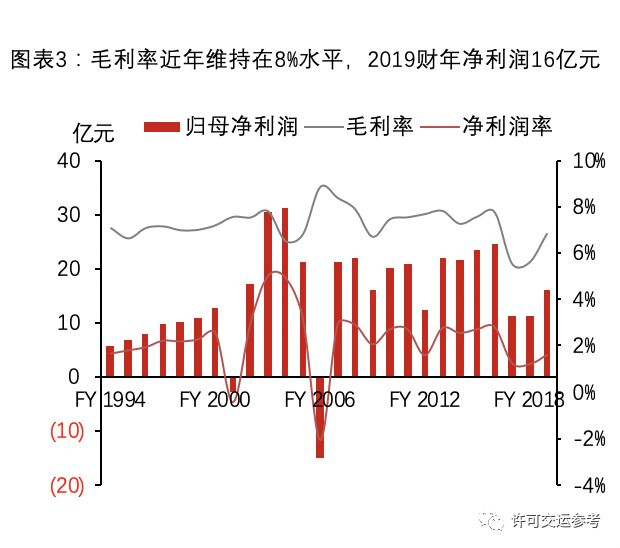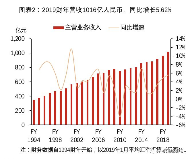 稳定,属于成熟后期,增长陷入瓶颈:① 利润稳定。从1994-2018年业绩数据来看,利润在大多数时间稳定在20亿左右。②分红稳定。分红率显著高于行业且稳定,多数年份可以保持在40%以上。