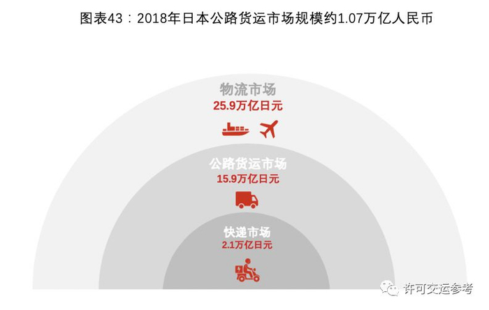 ②2018年日本公路货运市场规模1.07万亿人民币,是快递市场的7倍。