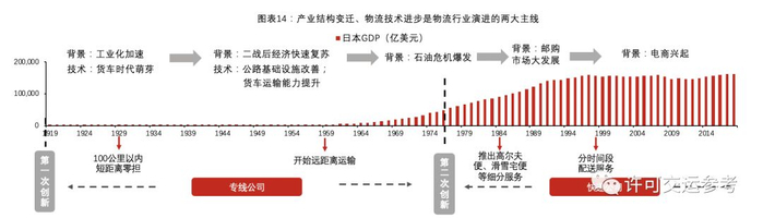 稳定而又持续的需求决定了物流行业是一个能出百年企业的行业。作为社会基础设施,物流需求始终存在,变化的只是需求的来源以及供给的形式。物流行业的演进以产业结构变迁、物流技术进步为两大主线,从YAMATO的发展历程来看,产业结构变迁带来需求变化,而物流技术的进步则在不断重塑供给方式。