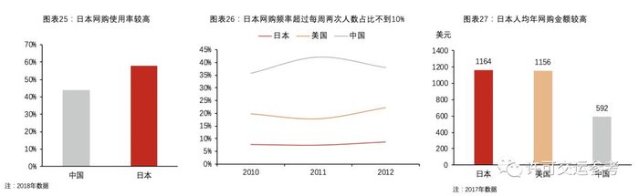 独特的产业基础塑造不同的电商市场。①进口为主的特征,决定了通过渠道变革降低轻工业品零售价格的空间不大;②日本轻工业品线下零售商密度大,价格低,线上竞争优势较小。因此日本不会产生淘宝,其电商市场也不是以中低端需求为主体构成。