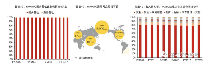 ①上世纪70-80年代的出海良机:经济全球化进程加速,且日本存在大量进出口需求。但当时的董事长山内雅喜认为YAMATO没有把握把国际件服务提升至本土件水准,因而延后。直至2000年才首次在东亚提供国际快递服务,却为时已晚,国际快递市场基本形成DHL、UPS、FedEx、TNT四家寡头垄断的格局。