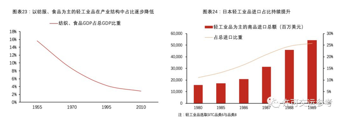 日本轻工业品通过进口满足需求,不存在大规模生产和产地直发带来的价格优势:几经产业变迁,现代日本制造业中劳动密集型的轻工业品大部分已经被替代,或转移海外。目前以纺服、食品、造纸为主的轻工业品主要依靠进口满足国内需求。