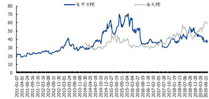 调味品的高估值并非A股独有,日本的龟甲万在高增长期,估值同样达到70倍。