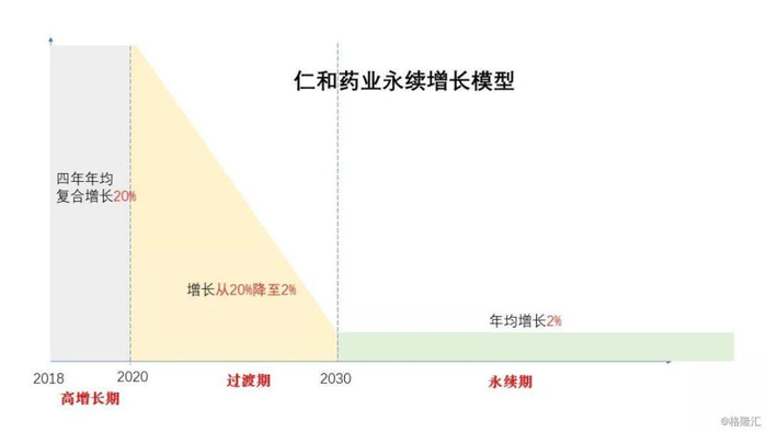 下图是2018年7月2日,银河证券对仁和药业作的 DCF估值分析中,假设的公司未来永续增长的模型: