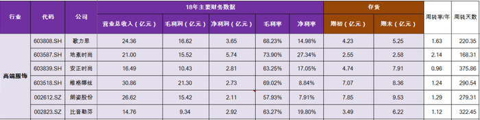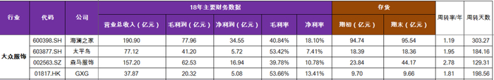 导致服装企业库存周转天数增加,18年服装品牌上市企业的业绩及整体库存情况: