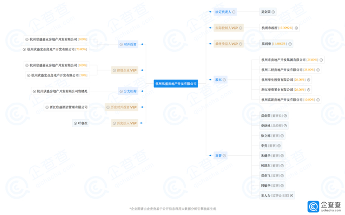 2006年4月,华荣参股 30%的杭州星辰房产中标杭州2004年标王地块世纪新城项目;2006年,参股杭州欣盛房产 24%,开发了东方润园。企查查资料显示,截至目前,华荣参股杭州欣盛房产20%,而法定代表人为莫剑荣,实际控制人为杭州市政府。