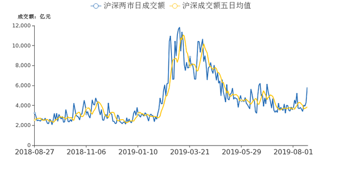 8月19日,沪深两市总计成交额为5826.01亿元,相较前一交易日的4312.99亿元上升35.08%。当日A股成交额高于五日均值,市场交易额逐渐上升。