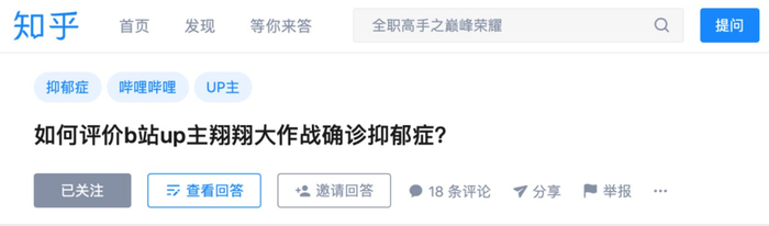 直至今日,在B站上那个“如何评价B站up主翔翔大作战确诊抑郁症”的问题底下,依旧挂着各种不理解的声音。