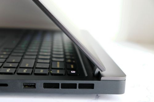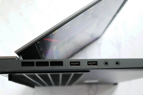 在机身左侧,该机分别提供了两个USB 3.0接口、耳麦接口、麦克风接口。其中3.5mm音频输出还通过了Hi-Res Audio高品质音频标准认证,内置高推力耳放,这意味着玩家可以使用更加专业的音频耳机来玩游戏或者听音乐