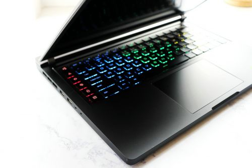 该机的键盘同样延续了前作四分区炫彩背光键盘设计,在小米盒子中你还可以对键盘灯的颜色及效果进行自定义,非常炫酷。