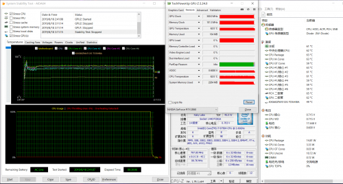 最后是时长为30分钟的CPU+GPU双烤测试,测试结束时CPU核心的温度为63度,功率为45W左右。而显卡的温度则为62度,功耗为90W左右,频率一直可以稳定在高段位释放,这也是小米游戏本2019性能持久稳定的原因之一,此时CPU和GPU各自的风扇都接近或达到了龙卷风模式的水平。