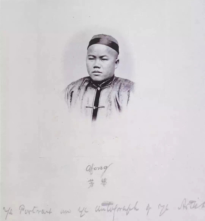 阿芳自拍像,1869年前后,蛋白印相,含英文签名“Afong”及中文签名“华芳”,并题“艺术家自拍像”