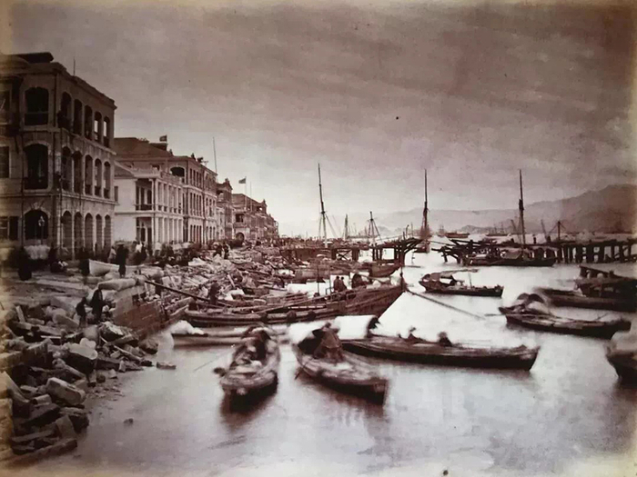 台风袭击后的香港德忌利士船坞,阿芳摄,1874年