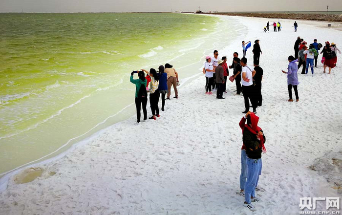 大柴旦翡翠湖游人如织(央广网记者 张雷 摄)