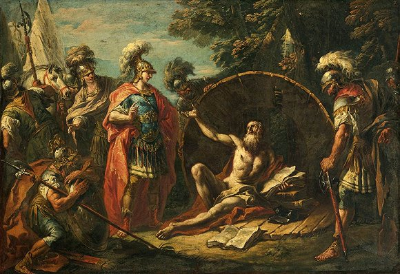 苏格拉底这种“破”的哲学,在第一个直接言说世界主义的犬儒主义哲学家第欧根尼那里被推向了一种“否定性的肯定”。在第欧根尼看来,他不要做任何一个城邦的人(否定),而要做一个自然人、世界人(肯定)。他并不是觉得做一个自然人、世界人有多伟大(否定),而是做一个城邦人太虚伪(否定性的肯定)。说实话,用“犬儒主义”来翻译第欧根尼的“Cynicism”实在是一种极大的误解。第欧根尼只是一个不合作的、玩世不恭的天涯流浪汉而已。这种古希腊“天涯人”的世界性有一种极强的“主体性”。在那个广为传颂的第欧根尼和亚历山大大帝的对话中,我们就可以看出第欧更尼的“犬”决非中国文化符号下的“狗”。当亚历山大大帝问可以为这位声名远播的哲学家做什么的时候,他的回答很干脆——“请不要挡着我的阳光。”换言之,第欧根尼把自己自嘲为一个“世界犬”,一个有原则(信奉自然)的世界公民——什么都吃,但是不臣服于任何一个地方和君主。